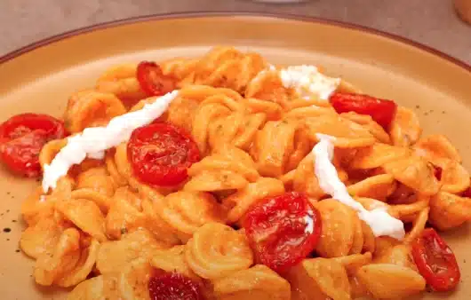 Orecchiette con pomodorini confit e stracciatella (o burrata)