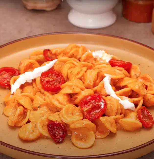 Ricetta delle orecchiette con pomodorini confit e stracciatella (o burrata) Se siete alla ricerca di un primo piatto semplice